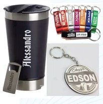 Na JPG Confecção e Estamparia, oferecemos personalização com precisão extrema e alta qualidade utilizando nossa máquina Fiber de 50W. Especializados em gravações em copos, garrafas térmicas, canetas e chaveiros metálicos, garantimos acabamentos impecáveis e duradouros. Ideal para brindes corporativos, presentes especiais ou itens personalizados, transformamos objetos em comuns em peças únicas e sofisticadas.