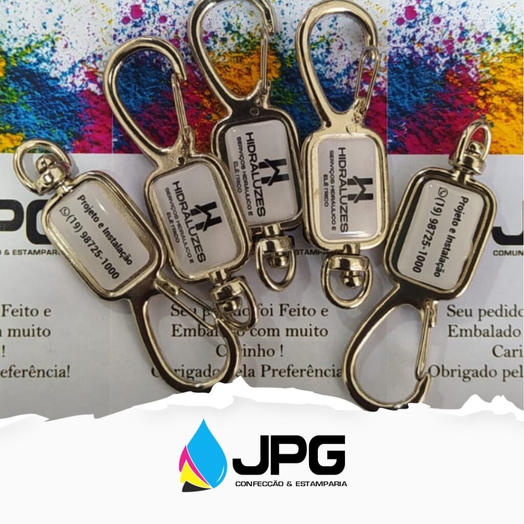 Chaveiro metalico personalizado em resina